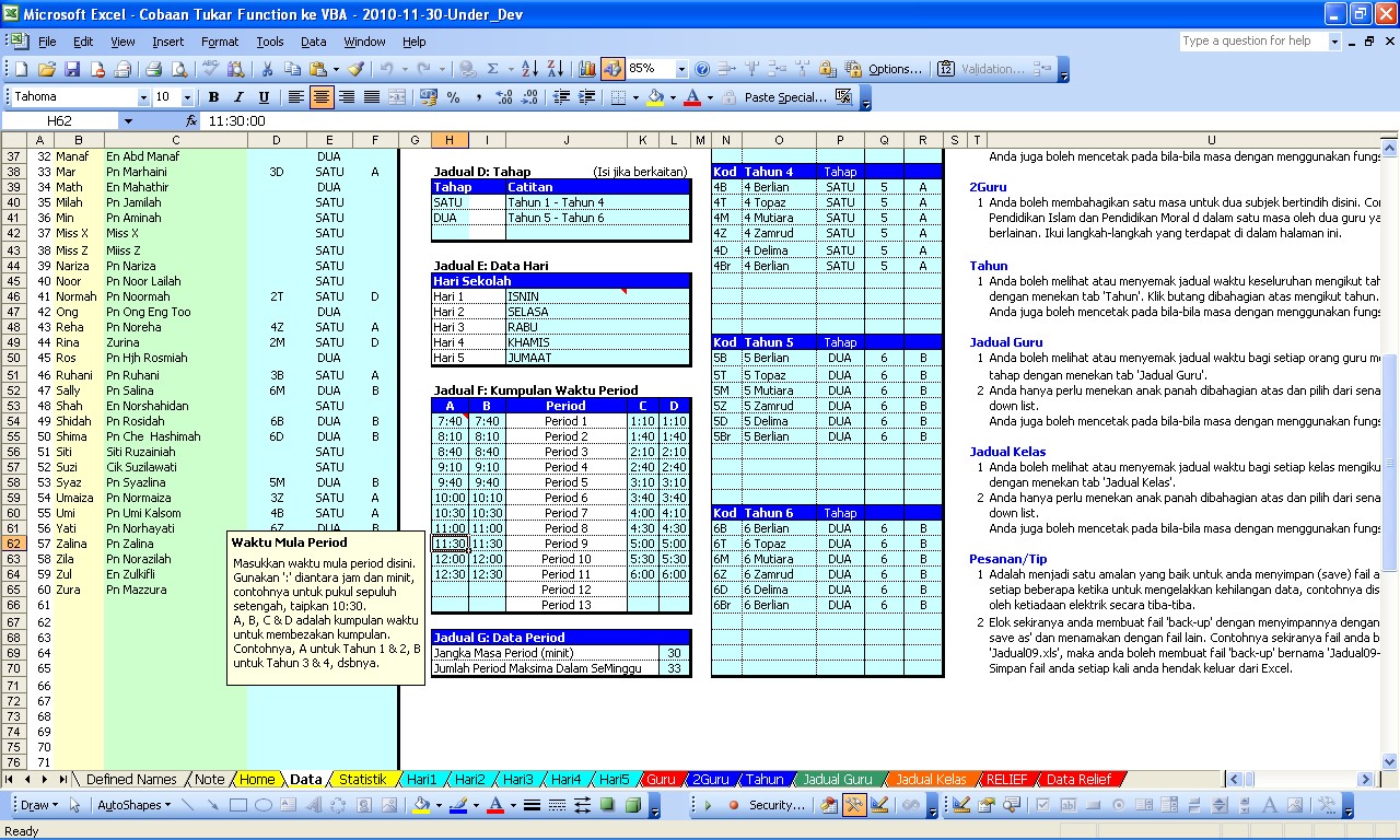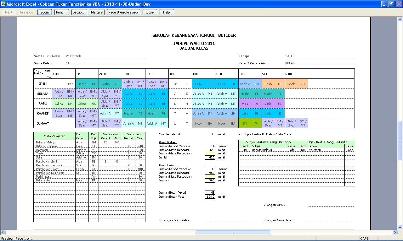 Jadual Statistik Guru - untuk mengesan bebanan masa setiap guru dalam seminggu.